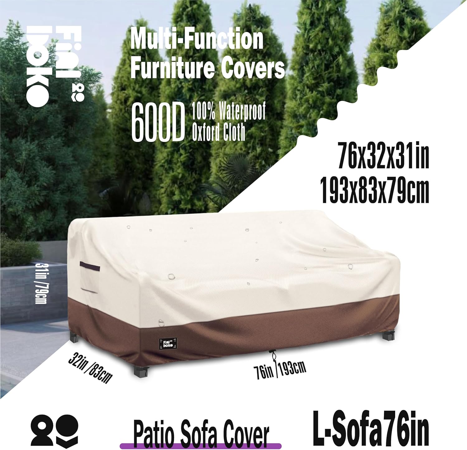 3-Seater Outdoor Couch Cover,76Wx32Dx31H Inches Patio Sofa Cover,100% Waterproof Heavy Duty Patio Furniture Covers,Beige&Brown