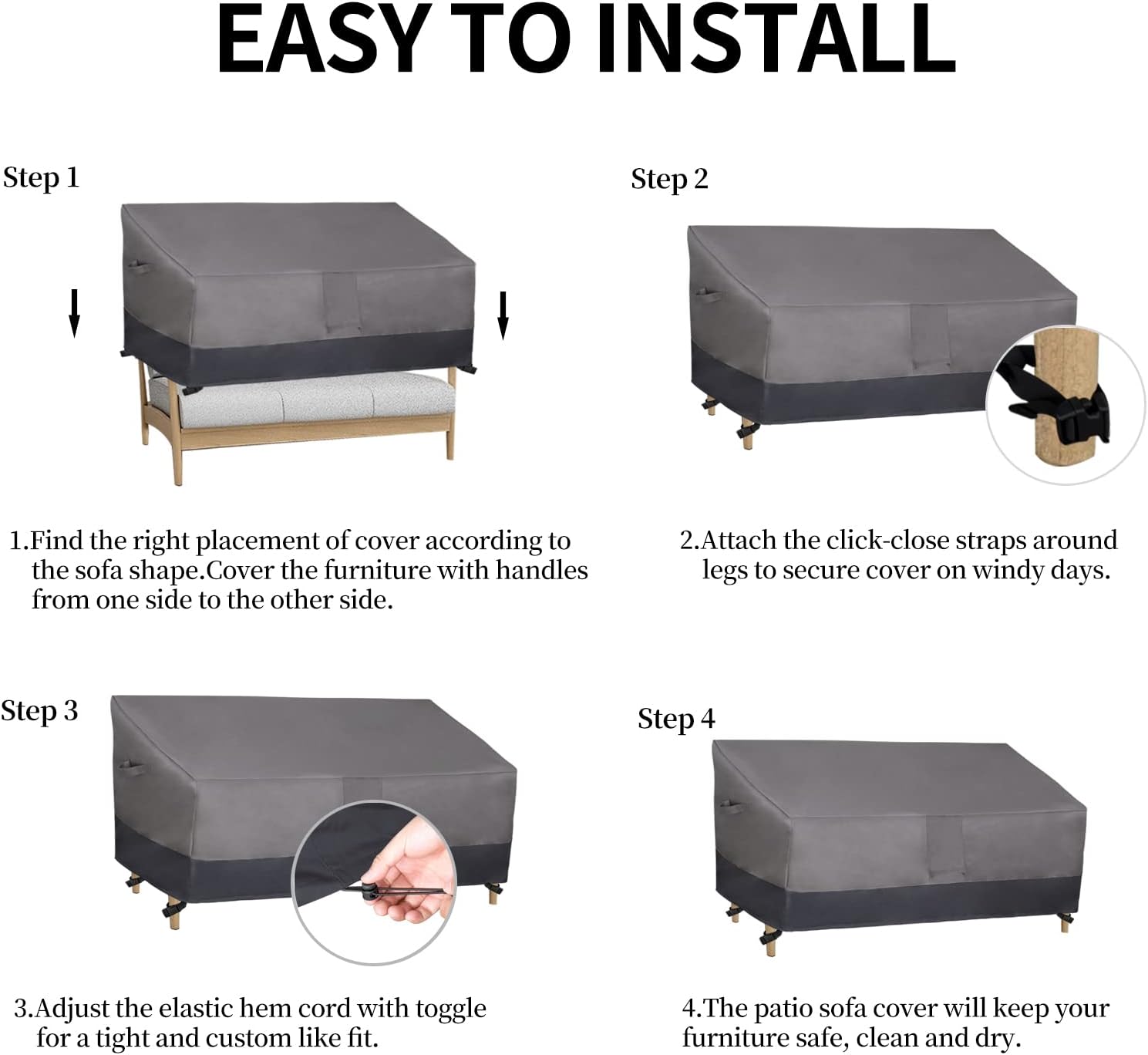 Easy-Going Outdoor Couch Cover, Heavy Duty 3-Seater Patio Sofa Cover, Windproof Outdoor Furniture Cover with Air Vent (88Wx32.5Dx33H inch,Gray/Dark Gray)