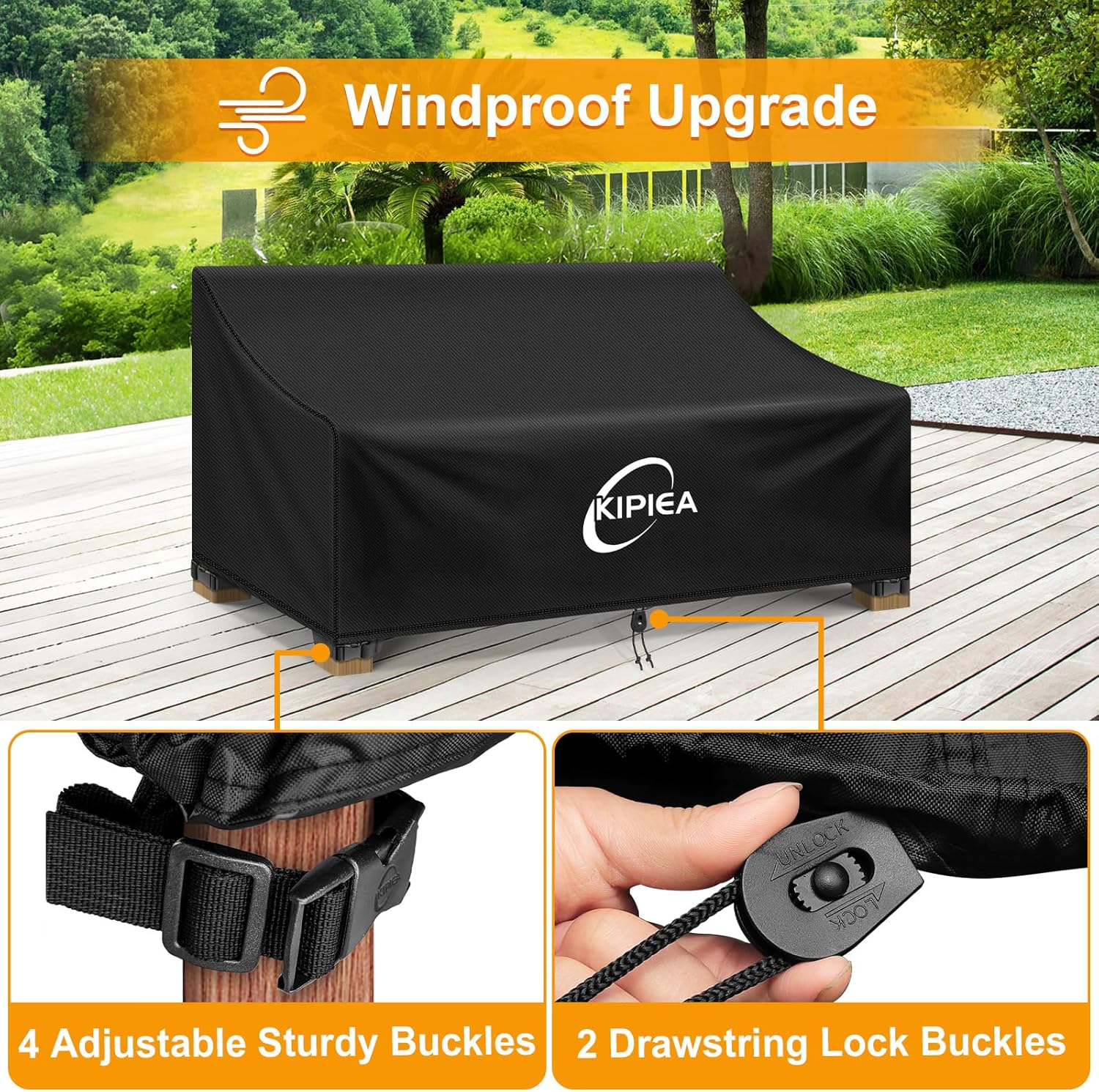 Kipiea Patio Sofa Cover, Heavy Duty Outdoor Couch Covers Waterproof Winter, 3-Seat Patio Furniture Cover Loveseat, Outdoor Sofa Covers with Anti UV and No Tears, No Fading (78" W x 34" D x 31" H)