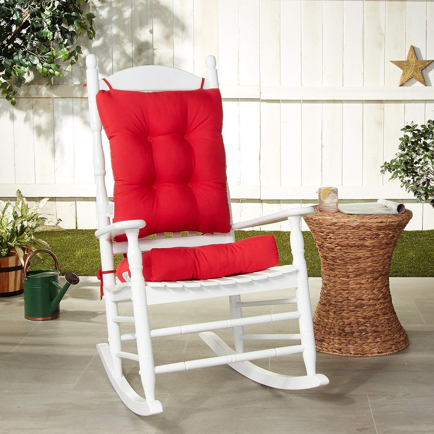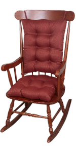Transform your rocking chair with Klear Vu Rocking Chair Cushions. The rocking chair cushions include (1) seat pad and (1) backrest pad only. Its solarium fabric is waterproof making it ideal to be used outdoors as porch swing cushions or rocking chair seat cushions outdoor.