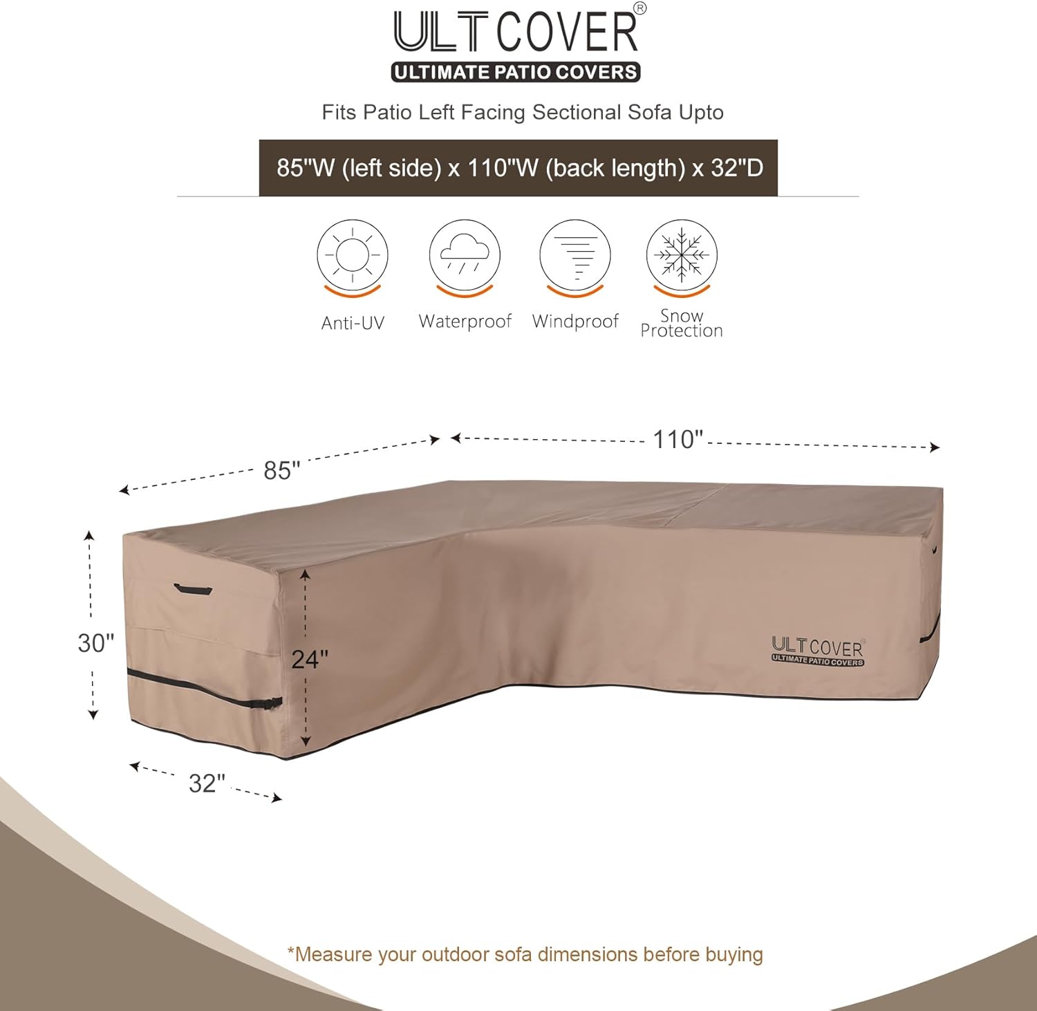 ULTCOVER Patio L-Shaped Left Facing Sofa Cover Waterproof for 6-Seater Outdoor Sectional Furniture Couch 85”W (Left Side) x 110”W (Back Length)